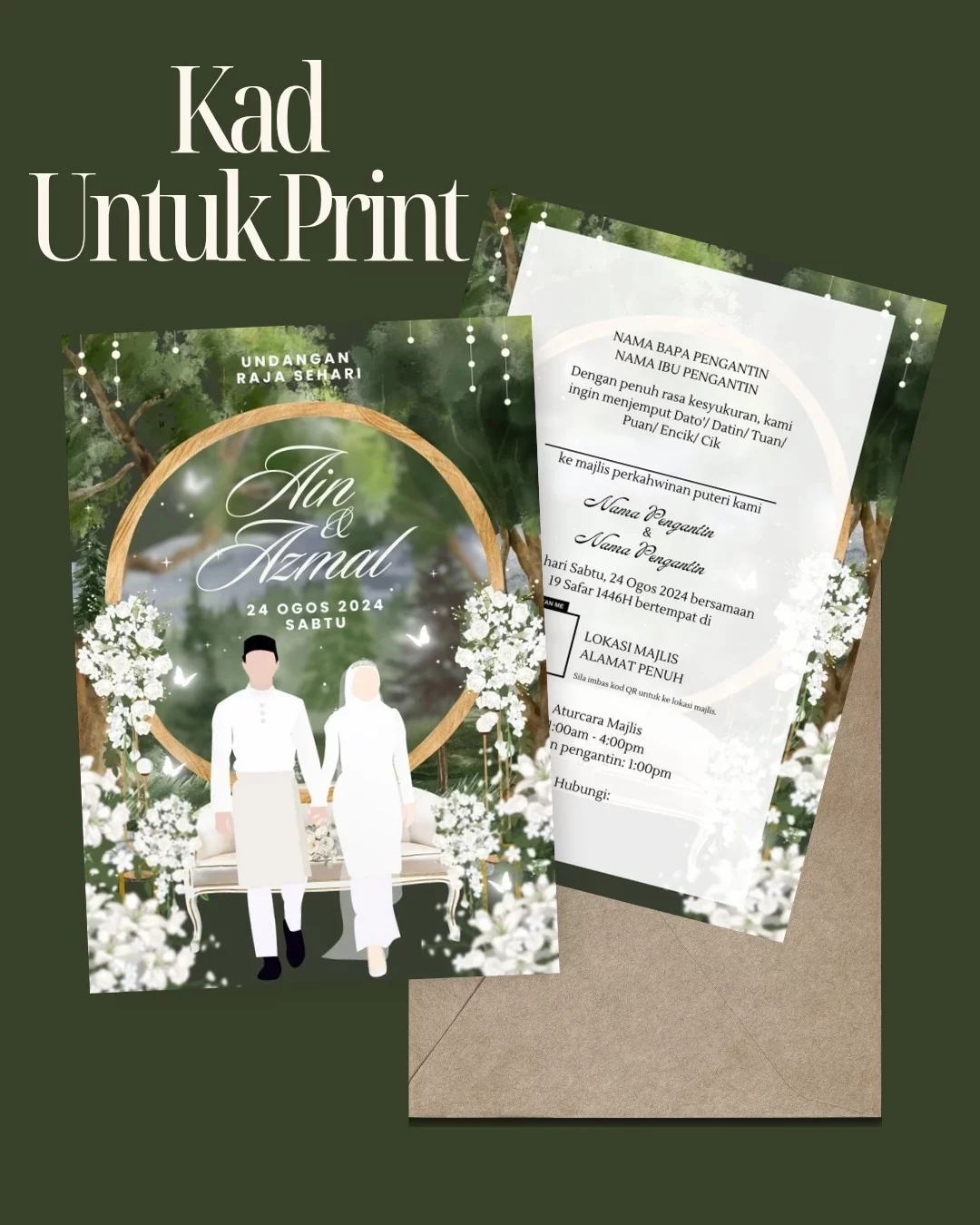 Ini jualan Template Kad Forest Garden. Untuk pengguna akaun Canva Pro dan Canva Free. Template hanya boleh ubahsuai teks. Warna & background adalah kekal (fix). Template tanpa lagu. Anda akan dapat template kad digital untuk video animasi dan template kad untuk print. Link template dihantar dalam emel wasep.me.